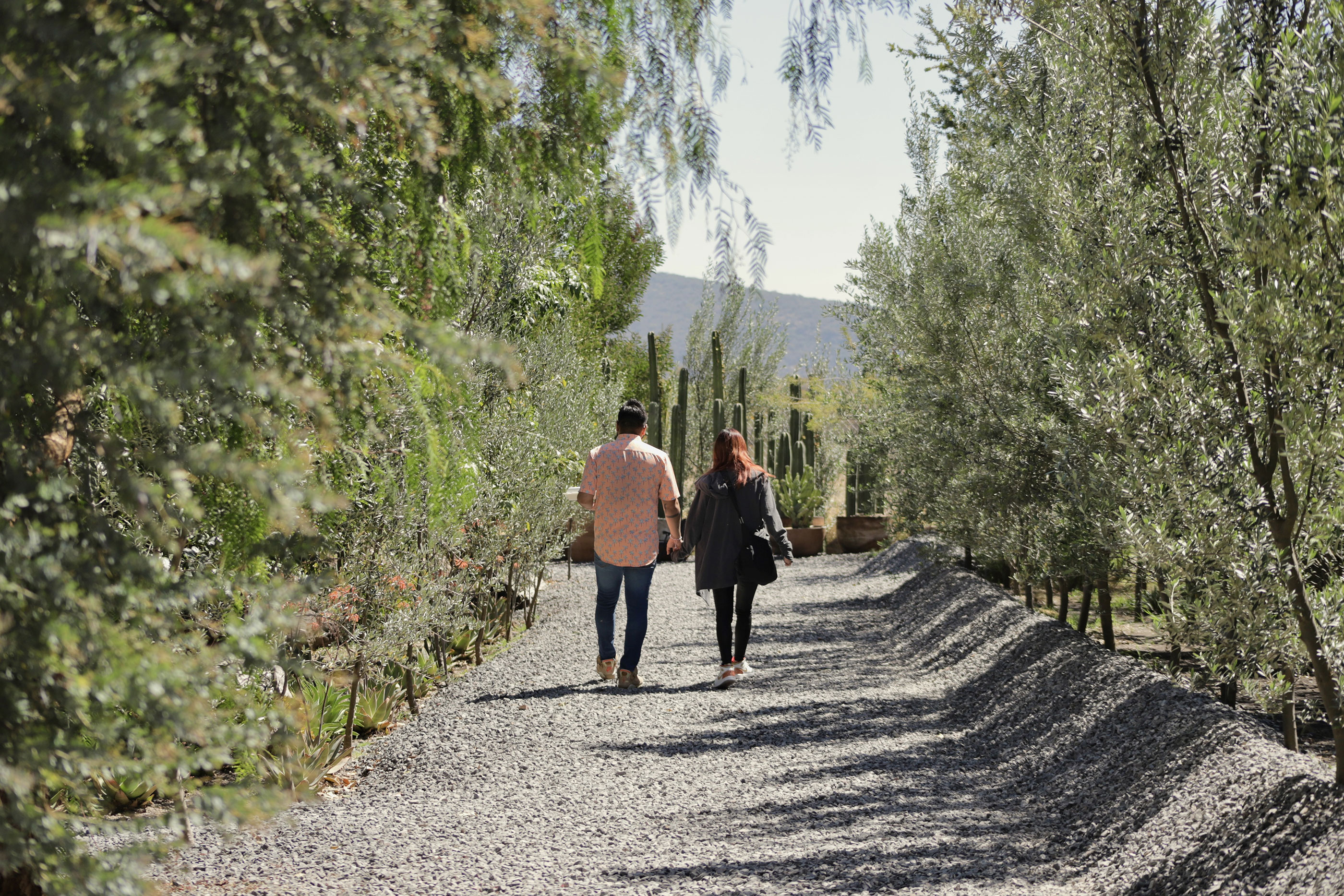 Ubicados en el corazón del campo, nos rodea un paisaje diseñado con esmero y sensibilidad. Cada jardín, cada sendero y cada planta han sido cuidadosamente integrados al entorno, creando un recorrido visual y sensorial que cambia con las estaciones. Nuestros espacios verdes combinan plantas exóticas, especies nativas, árboles frutales, cactáceas, suculentas y microclimas únicos, que invitan a pasear, descubrir y respirar profundo. Aquí, el canto de los pájaros, el susurro del viento entre las hojas y el aroma de la tierra fresca acompañan cada momento.